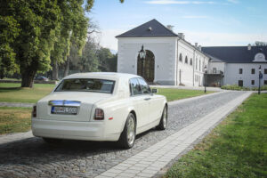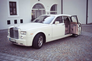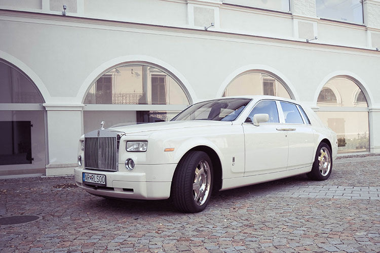 Wedding limousines black Maserati Quattroporte and white Roll Royce Phantom for your most beautiful day.